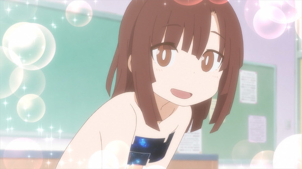 第3話では、水泳部部長・北長さんが科学部を訪ねてくる。いわく、水泳部ののぞき対策のために、上野さんに発明品制作を依頼していたとのこと。疑似立体映像投影装置「キルトハイド」を受け取った北長さんは、おもむろに水着を脱ぎ始め……。