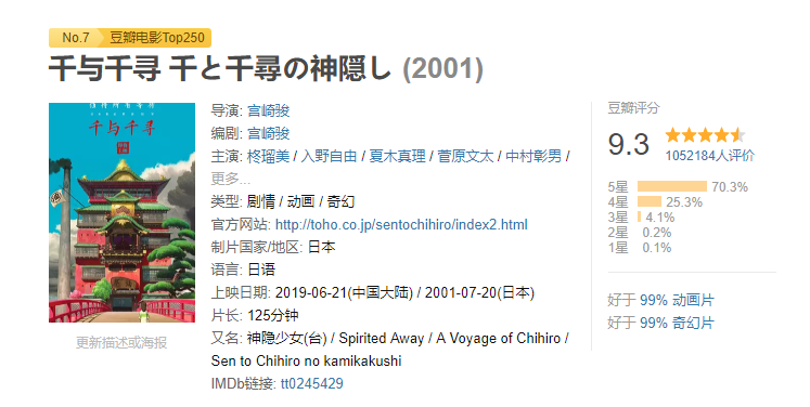 今天下午,根据豆瓣显示,吉卜力工作室经典动画电影《千与千寻》正式确定将于6月21日登陆内地院线。豆瓣官方页面截图如下: