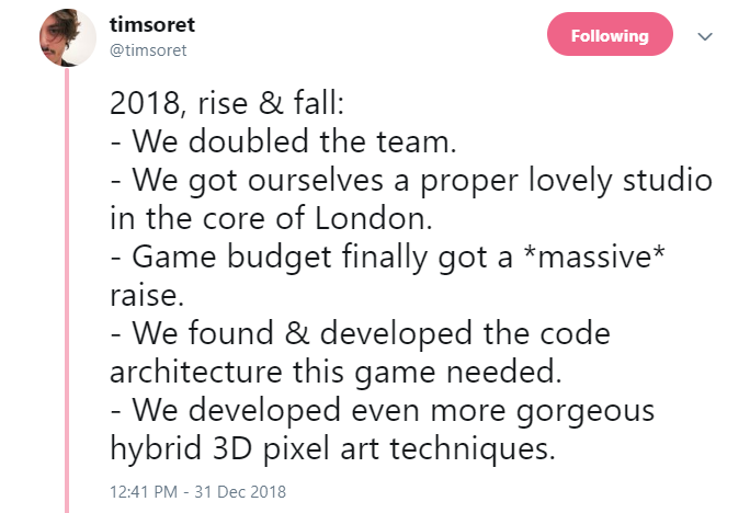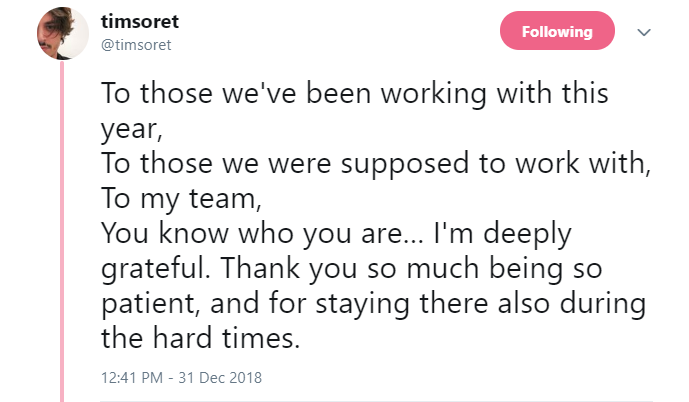 在总结制作组2018年时,Tim Soret 首先列出了一些利好信息: