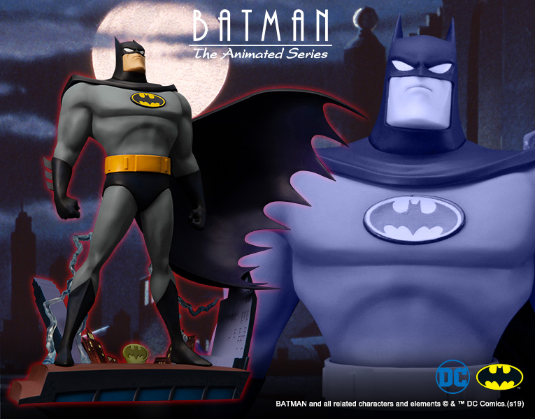 寿屋的 ARTFX+系列将推出《蝙蝠侠动画系列》的蝙蝠侠模型。模型造型还原了动画片的 OP 画面,底座包含楼顶、大厦、闪电、蝙蝠灯等元素。这款模型全高21厘米,比例为1/10,售价8500日元(不含税),预计将于2019年11月发售。
