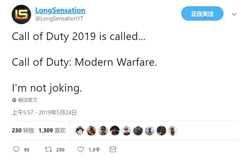 最先由油管主播 LongSensation 在其推特上爆料称,下一作《使命召唤》的完整名字将为《使命召唤:现代战争》,没有后缀没有序号,而且他也表示没有在开玩笑。