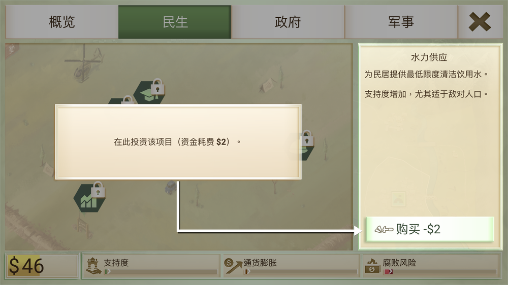 与前作《瘟疫公司》一样,《反叛公司》也是一款模拟休闲类游戏。但我们这次并不是要培养一个能够大杀四方最后消灭全人类的病毒,而是要通过对于“民生、政府、军事”这三方面的均衡发展来为人民带来和平安康。