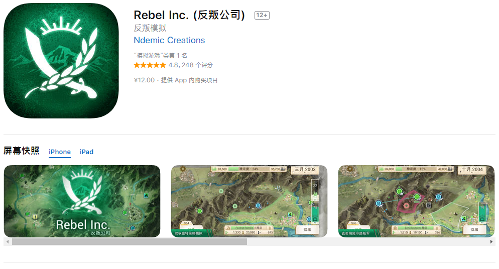 目前,《反叛公司》已经在 IOS 平台上架,国区售价 12 元(可以内购,但没必要)。此外,制作组 Ndemic Creations 表示将于今年 2 月份正式发售安卓版本,推荐喜欢《瘟疫公司》的朋友入手。比起消灭全人类,有时候做一把叛乱地区的救世主也不错。