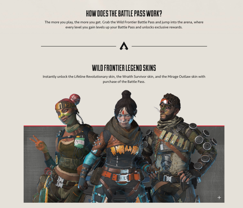《Apex 英雄》第一赛季“狂野边境”的战斗通行证(Wild Frontier Battle Pass)将于明天(3月20日)凌晨1:00 正式上线。
