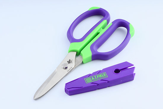 初号机剪刀在刃体部位采用了锯齿设计,2号机剪刀出了锯齿设计之外还追加了U字锯齿,EVA剪刀由ニッケン刃物株式会社制作,这家公司已经有70年的刀具制作历史,两款剪刀均为刀具名产地岐阜县关市的刀具职人亲手打造。