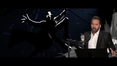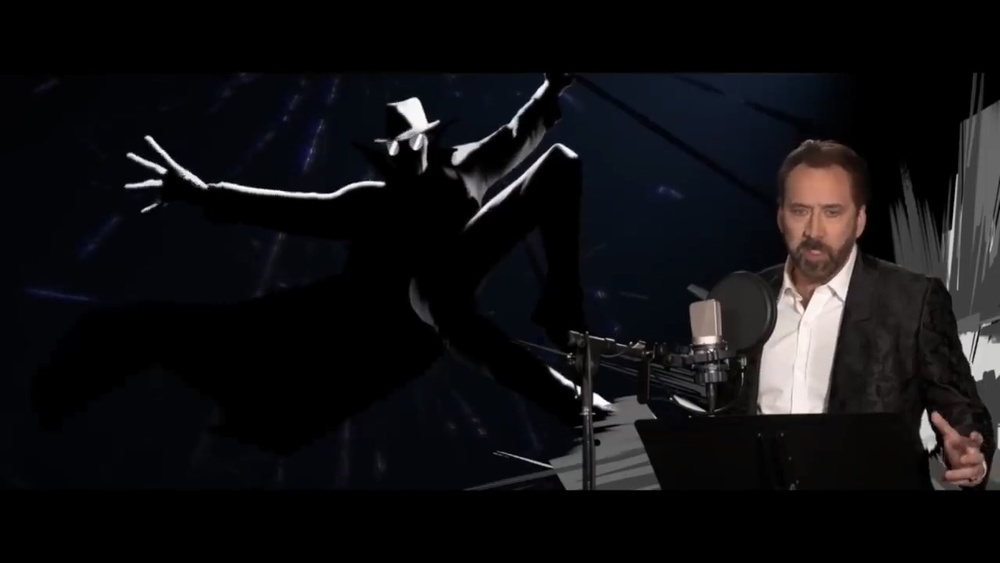 几段配音片段中,最有戏剧性的要数尼古拉斯·凯奇给暗影的这段配音了。尽管是素衣便服,但凯奇俨然已经是一个来自1930年代的noir英雄了……