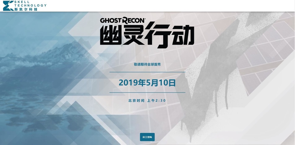 育碧今天终于揭开了谜底,新游戏乃是一部《幽灵行动》系列新作,并将在5月10日北京时间凌晨2:30正式公开。而且“斯凯尔科技”的中文官网页正式上线,使用与英文官网相同的用户名及密码(ID:asantos,PW:10068)就能直接从“员工登录”入口处获得其中文宣传片。