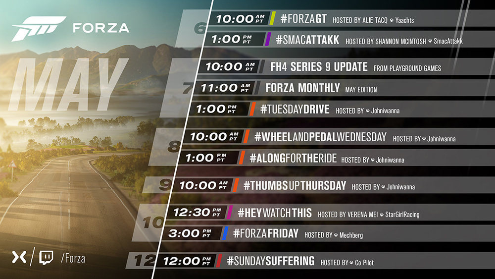 Forza Horizon 4的系列更新9定于下周,Playground Games将在上午10点位于PG总部开始现场直播。确保关注Forza Mixer和Twitch频道,准备好与PG工作人员一起享受游戏带来的乐趣。