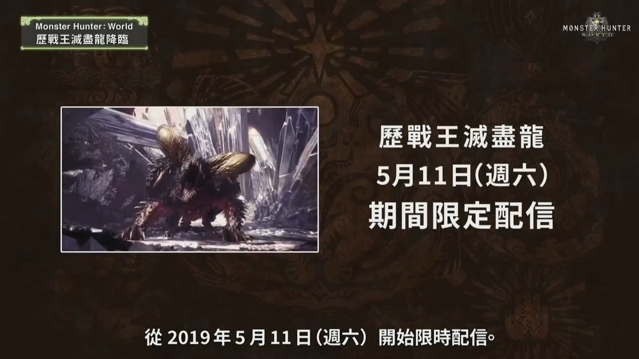 节目的最后,辻本良三与德田优也为玩家们讲解了即将在《怪物猎人 世界》本篇中更新的「历战王 灭尽龙」任务,并对于广大玩家们一直以来的支持表示感谢。