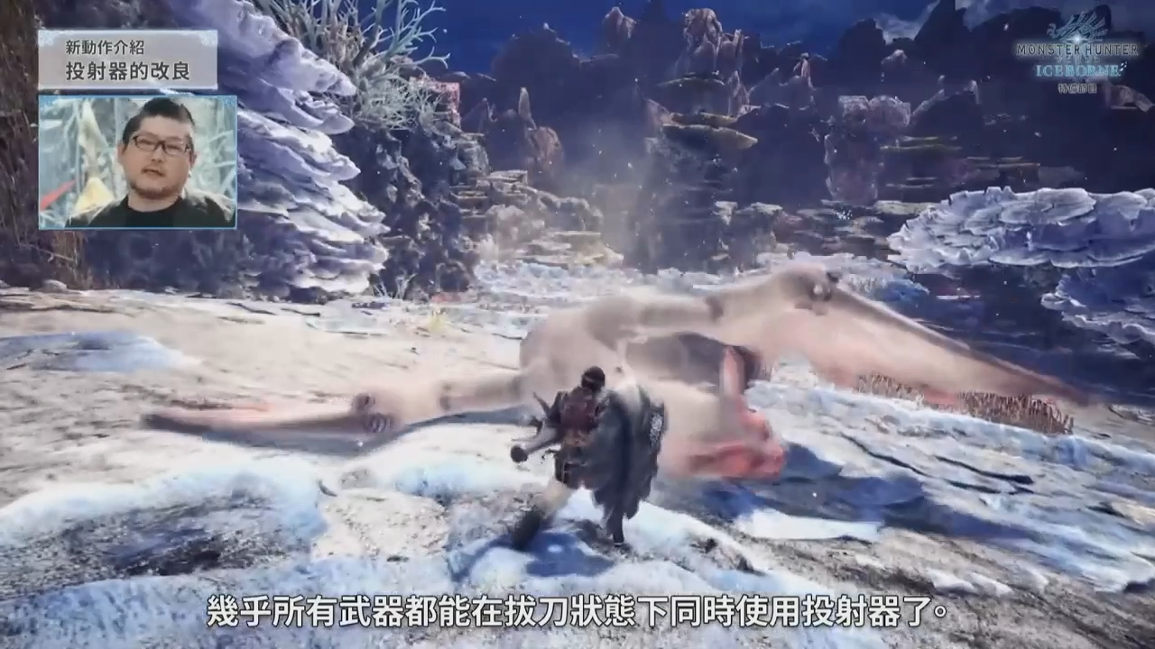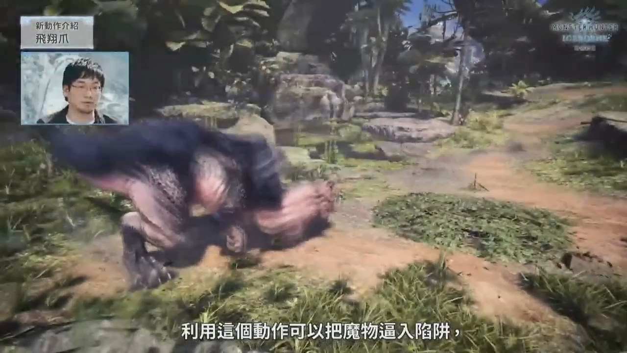 接下来介绍的是部分追加的新猎人动作与武器动作,首先,几乎所有武器都能在拔刀状态下使用投射器,对于使用像是闪光弹之类的关键道具有很大的帮助。另外,追加了一个「飞翔爪」的动作,可以使用投射器发射,朝向怪物飞去并紧紧抓住怪物,还能诱导怪物撞向陷阱。除了投射器,各类武器的连续动作也都有新的要素,节目中以大剑、双剑、轻弩举例来介绍,不过这并非全部内容,更多相关的动作有待后续公开。