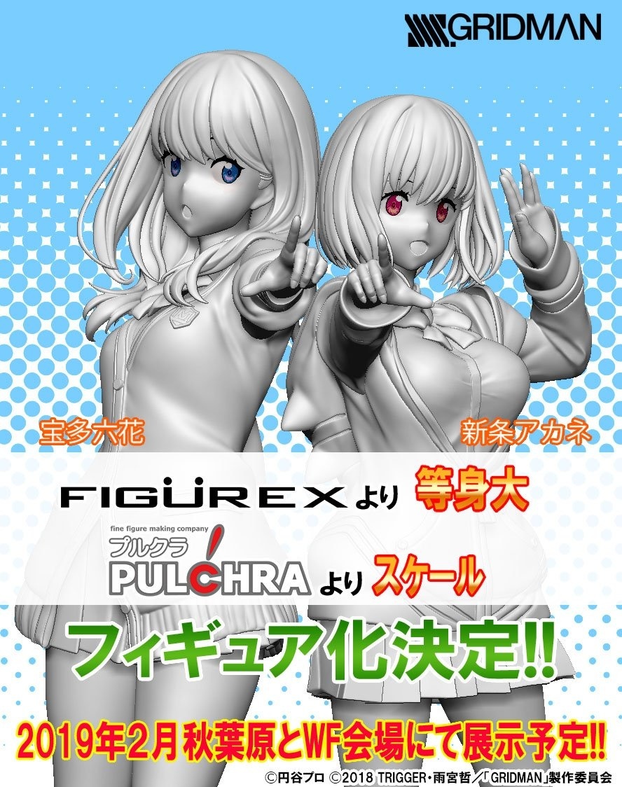 “等比模型专业户”FIGUREX 宣布将制作《SSSS. GRIDMAN》宝多六花、新条茜的等比模型。这两款模型将于今年2月在秋叶原和 WF 展会现场对外展示。