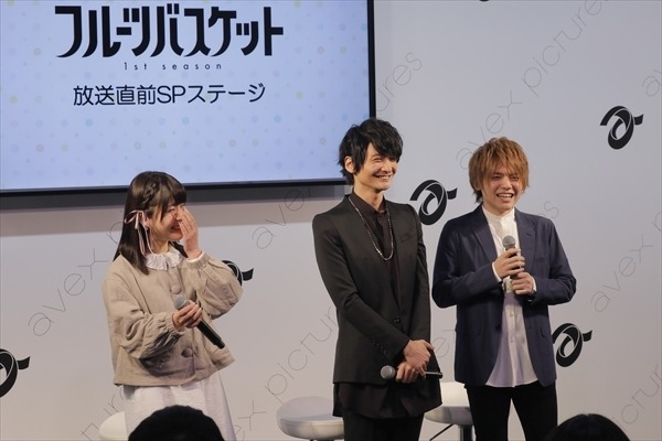 3月24日、TVアニメ『フルーツバスケット』(4月5日放送開始)が、「AnimeJapan 2019」にて「放送直前SPステージ」を開催した。会場には石見舞菜香(本田透役)、島崎信長(草摩由希役)、内田雄馬(草摩夾役)が登壇。放送直前だからこそのトークが飛び出したほか、3人の息の合ったゲームコーナーも大盛り上がったステージとなった。