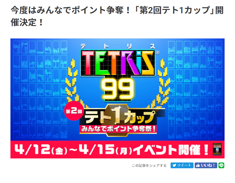 任天堂官方在今日公布,《俄罗斯方块99》的第二次线上比赛活动即将开幕。简单来说,该活动只要玩家参与就有机会获得任天堂金币奖励,而任天堂的金币可以帮助你在商店兑换很多东西,所以算是一项不容错过的福利活动。