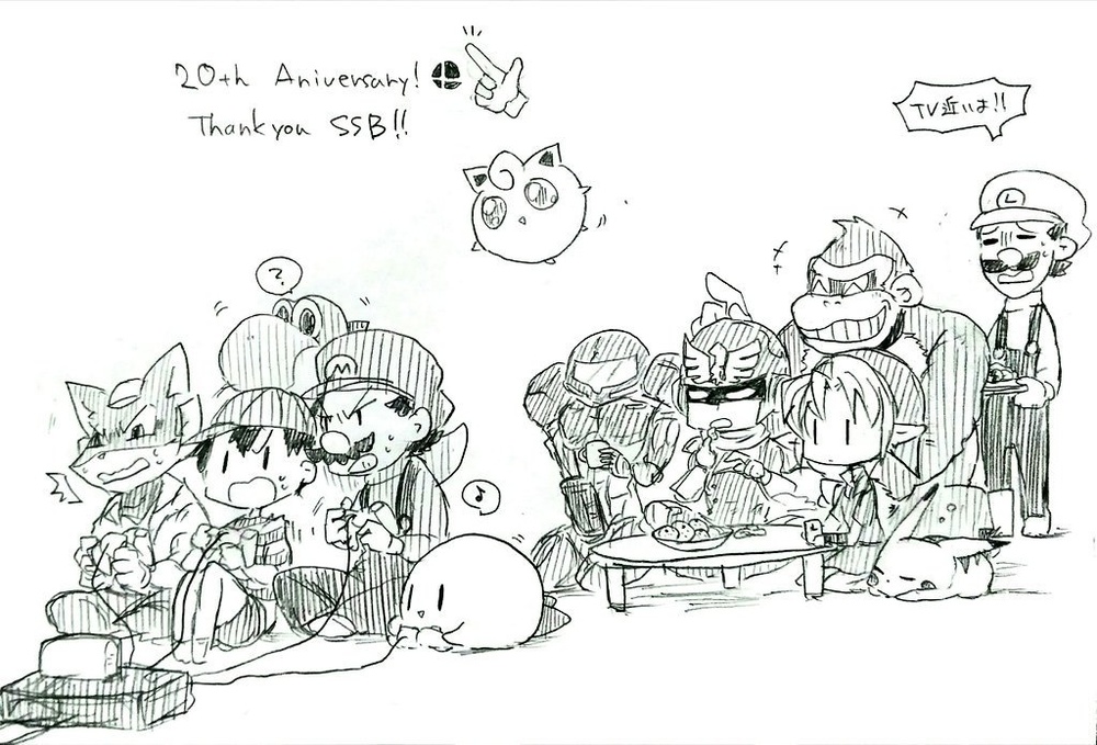 在推特上,热心的粉丝也纷纷晒出自己绘制的贺图或者收藏的《大乱斗》并且贴上 #スマブラ20周年 这个标签,以表达自己对这个系列的喜爱之情。