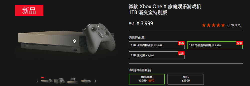 这两款特殊配色的 Xbox One X 此前都是同捆限定版,分别搭配的是《辐射76》与《战地5》,并未单独销售,也是 Xbox One X 仅有的对外销售限定机(Xbox 官推经常会拿一些限定机抽奖,但都是仅此一台)。