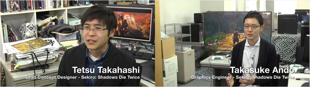 在视觉方面,二人都提到了这次的世界背景是日本,所以运用了很多的日本元素。一方面来说他们也都对此很高兴,另一方面这也是一种挑战,需要注意的地方有很多。对于日本传统建筑的研究,让身为首席概念设计师的 Tetsu Takahashi 都感到印象深刻,他被这些精巧建筑所折服。